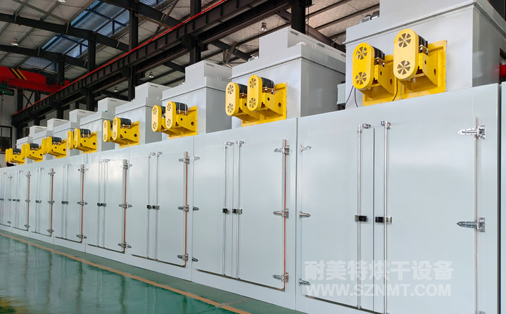 3.單個產品進入烘箱前91KG,烘烤后49KG,去水量42KG/個,每個烘箱放置16個產品,爐內滿足8個架子每個架子上下疊加放置2個產品,架子尺寸為800*800*1750mm。